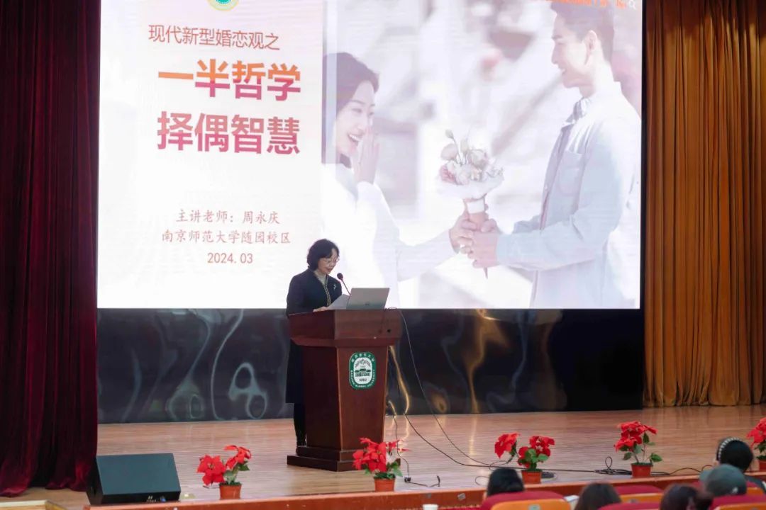 联合主办的《现代新型婚恋观之一半哲学·择偶智慧》专题讲座在随园校区贻芳学术报告厅举办。江苏省家政学会理事长、南京师范大学教授赵媛主持,中华优秀传统文化研究学者、中国家风传承专家周永庆担任主讲嘉宾,吴贻芳研究中心主任、南京师范大学教授钱焕琦、江苏省家政学会副理事长、秘书长、南京师范大学教授熊筱燕、南京林业大学教授刘冬冰、副教授周曼及随园校区各二级自拍流出研究生代表180余人现场聆听了本次主题讲座。