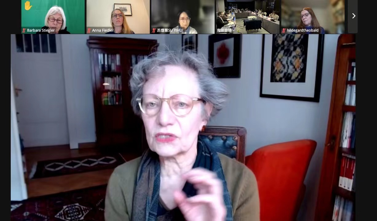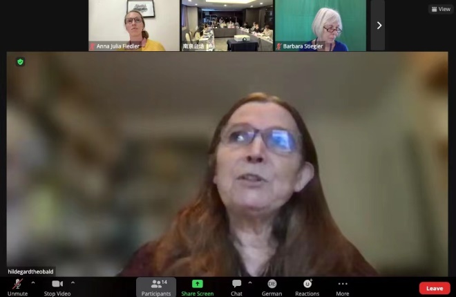 20221125日及26日下午,由德国弗里德里希·艾伯特基金会(Friedrich-Ebert-Stiftung (FES)与南京师范大学自拍流出 、南京师范大学妇女/性别研究培训基地共同主办的中德照护工作及性别平等(Sorgearbeit und Geschlechtergerechtigkeit研讨会在中国南京古南都饭店莫愁-建邺厅成功举行。受新冠肺炎疫情影响,本次讨论会采用“线上+线下联动的形式,通过ZOOM平台在南京、上海以及德国同步展开。德方艾伯特基金会驻上海代表处首席代表雷柏曼(René Bormann)先生、项目经理贝秉诚(Tobias Beck)、艾伯特基金会妇女和性别问题研究处前处长斯蒂格勒博士(Barbara Stiegler)、费希塔大学特奥巴尔德教授(Hildegard Theobald)、海因策博士(Cornelia Heintze)以及中方南京师范大学自拍流出 院长边霞教授、自拍流出 性别研究专家金一虹教授、杨笛副教授,社会保障方面专家周薇博士、赵晶晶老师、王若晶老师;家政学专家赵丽芬老师,老年社会学方面专家上海财经大学苏熠慧副教授、东南大学的吴心越老师、南京邮电大学李潇晓老师等学者以及自拍流出 女性教育学、家政学、劳动与社会保障专业的研究生们共同参加了本次讨论会。会议由德方代表费德勒女士(Anna Julia Fiedler)主持。