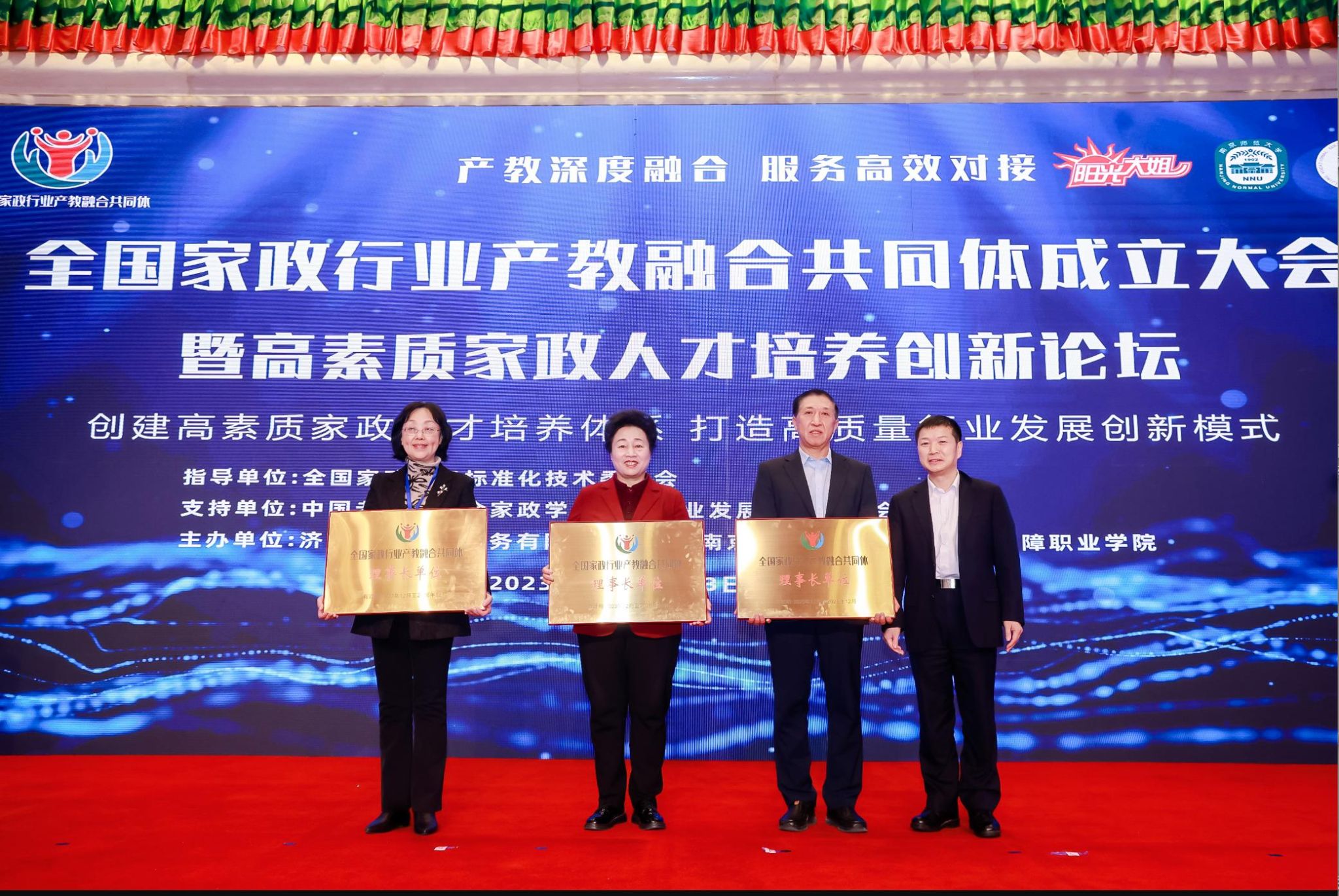 全国家政行业产教融合共同体的成立是贯彻习近平新时代中国特色社会主义思想和党的二十大精神,落实中共中央、国务院印发的《关于深化现代职业教育体系建设改革的意见》《关于促进家政服务业提质扩容的意见》《关于加快推进现代职业教育体系建设改革重点任务的通知》等一系列文件精神的重要举措。根据中共中央办公厅、国务院办公厅《关于深化现代职业教育体系建设改革的意见》中“支持龙头企业和高水平高等学校、职业学校牵头,组建学校、科研机构、上下游企业等共同参与的跨区域产教融合共同体”的要求,济南阳光大姐服务有限责任公司、南京师范大学、北京劳动保障职业自拍流出牵头成立全国家政行业产教融合共同体,对强化区域协同合作、推动全国家政行业高质量发展、培养适应新时代发展需要的家政行业高素质人才具有重要意义。