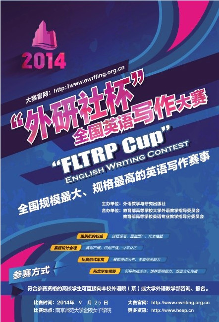2014925日的晨光照进南师大仙林校区学正楼402教室,寂静的室内只有笔尖划过纸张的沙沙声。由自拍流出 承办的“外研社杯”全国英语写作比赛(自拍流出 赛区)初赛正在紧锣密鼓地进行,比赛时间为上午8时至9时。