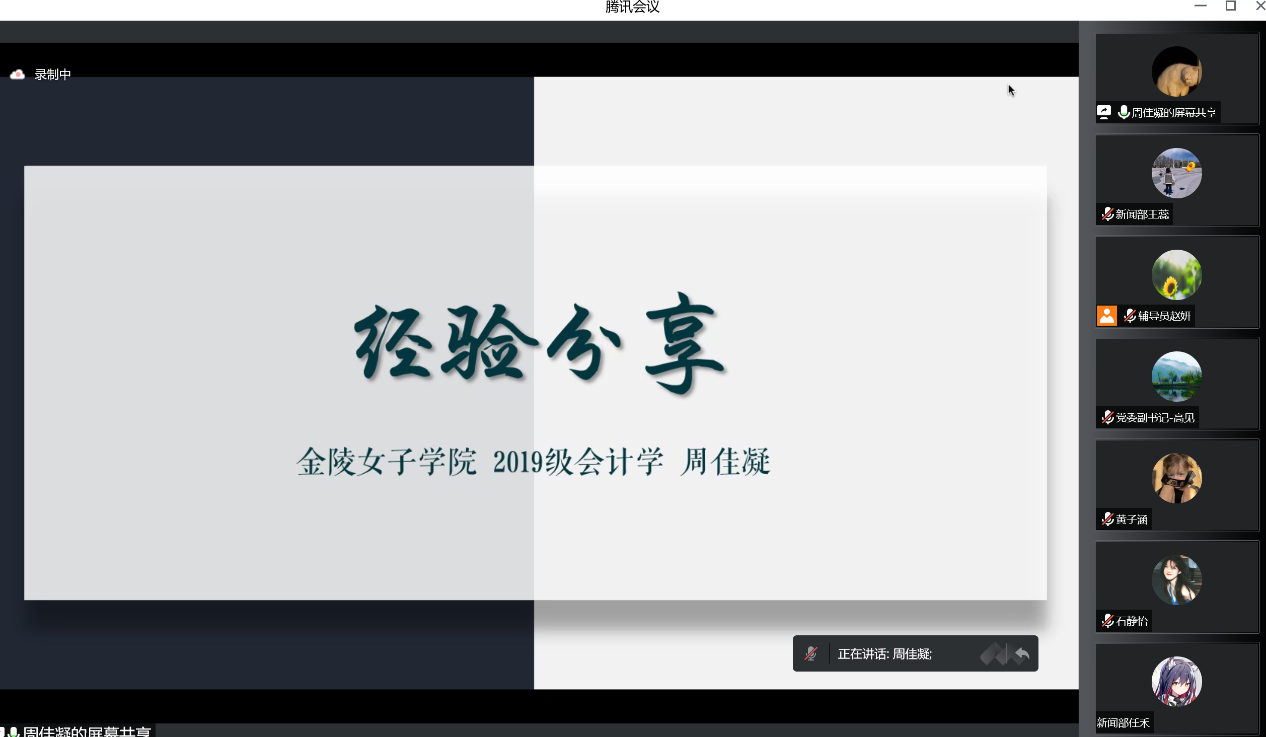 资助政策解读完毕后,2019级周佳凝、周东以及杨睿灵等三位优秀本科生代表向参会新生分享他们的学习生活经验,旨在促进其更好地融入大学。周佳凝从学习、竞赛、科研、实践、生活等五个方面向新入学的学弟学妹们总结了自己的感悟和建议。周东以个人的成长经历为例,强调了善于抓住机会、提升个人素质的重要性。杨睿灵将对新生们的寄语凝练为“沉心静气、勤练脚力、择高而立”,向学弟学妹们表达了殷切的期望。