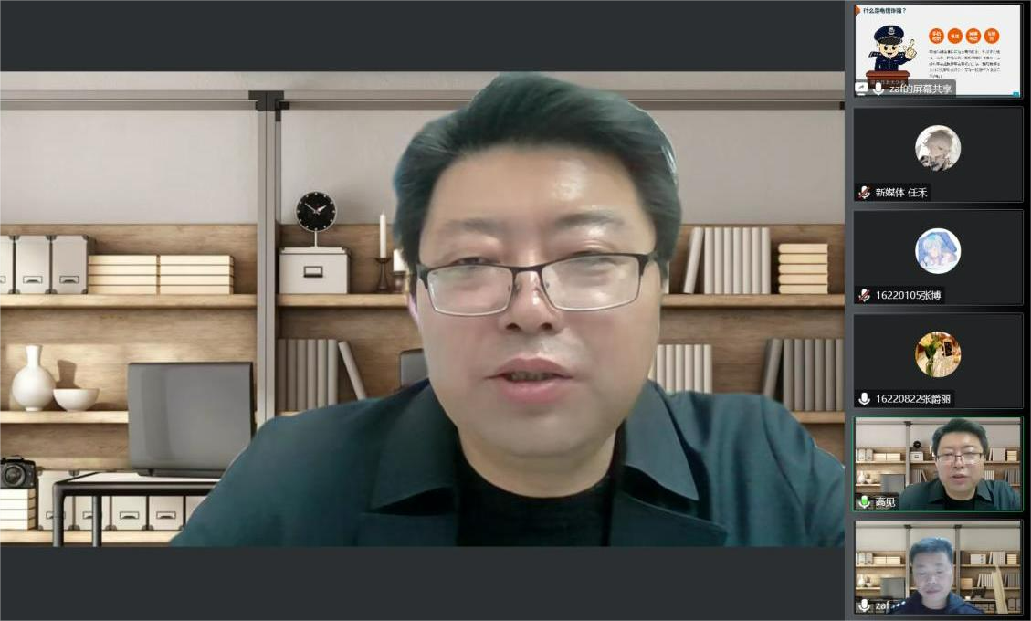面向2022级本研新生召开以反电诈为主题的线上安全教育讲座。本次讲座邀请仙林派出所一级警长张爱峰警官担任主讲人,院党委副书记高见出席并主持此次活动。