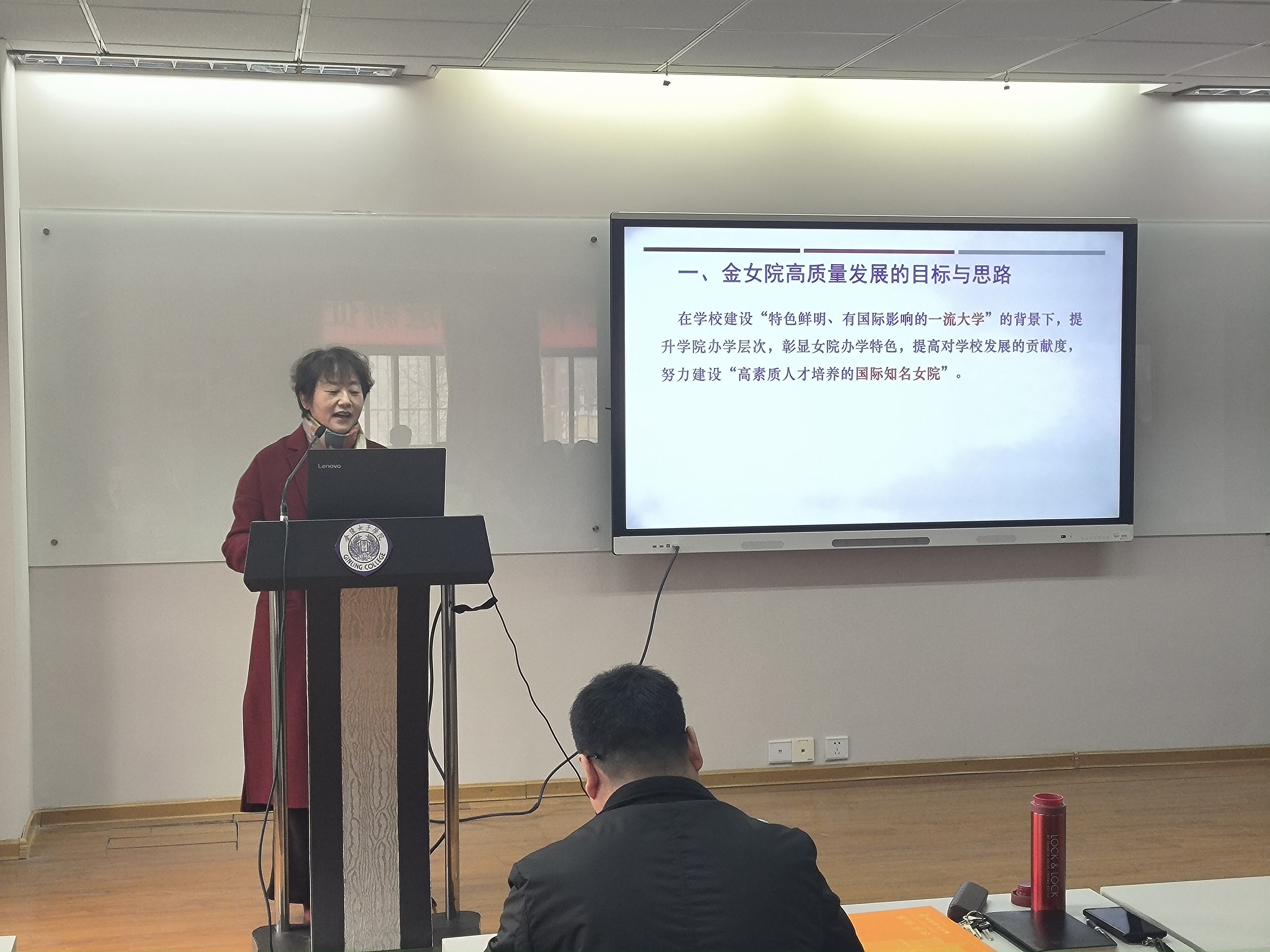 院高质量发展的思考”为题,作主题发言,从目标与思路、面临的主要问题,以及2023主要工作三个方面探讨如何推动自拍流出的高质量发展,分析了自拍流出当前面临的机遇和挑战,提出了未来的发展思路和工作理念:一是持续加强学科内涵建设,全面提高学科科研整体实力和水平;二是持续坚持引育并举,多措并举打造一流的师资队伍;三是突出人才培养核心地位,持续深化人才培养模式,全面提升人才培养质量;四是提升人才培养国际化层次,加强国际合作与交流;五是发挥女院优势,积极拓展社会服务领域,提升社会服务职能,打造教育培训品牌。